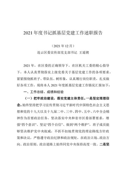 / 述职报告:2021年度书记抓基层党建工作述职报告(宣传部)