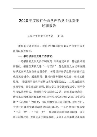 / 述职报告:2020年度履行全面从严治党主体责任述职报告(红十
