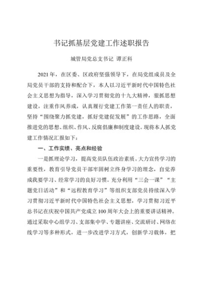/ 述职报告:2021年度书记抓基层党建工作述职报告(城管局)
