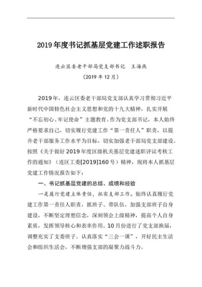 / 述职报告:2019年度书记抓基层党建工作述职报告(老干局)