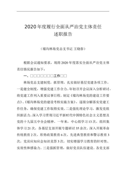 / 述职报告:2020年度履行全面从严治党主体责任述职报告(墟沟