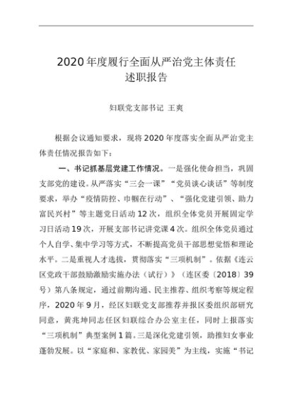 / 述职报告:2020年度履行全面从严治党主体责任述职报告(妇联