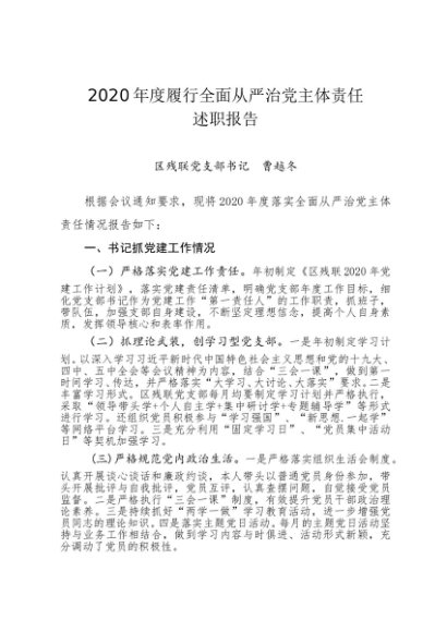 / 述职报告:2020年度履行全面从严治党主体责任述职报告(残联