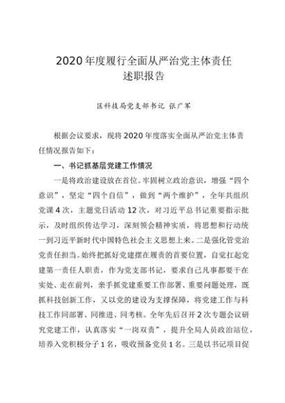 / 述职报告:2020年度履行全面从严治党主体责任述职报告(科技