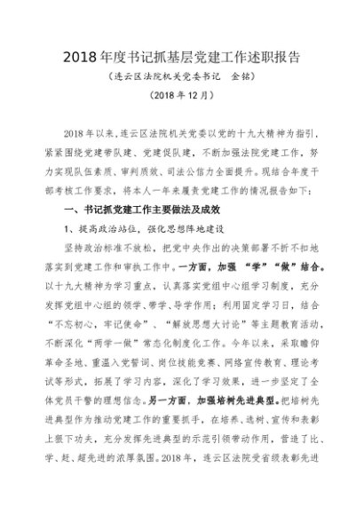 / 述职报告:2018年度书记抓基层党建工作述职报告(法院)