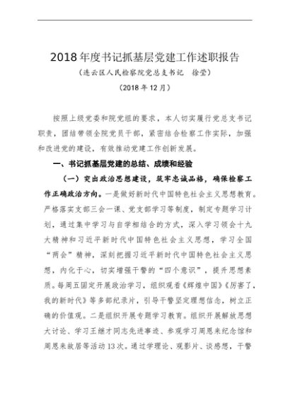 / 述职报告:2018年度书记抓基层党建工作述职报告(检察院)