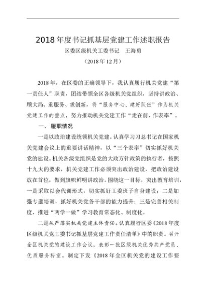 / 述职报告:2018年度书记抓基层党建工作述职报告(机关工委)