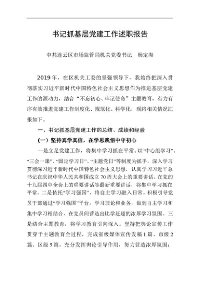 / 述职报告:2019年度书记抓基层党建工作述职报告(市场局)