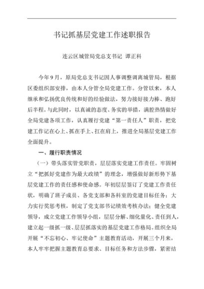 / 述职报告:2019年度书记抓基层党建工作述职报告(城管局)