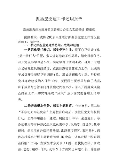 述职报告:2019年度书记抓基层党建工作述职报告(海滨旅游度