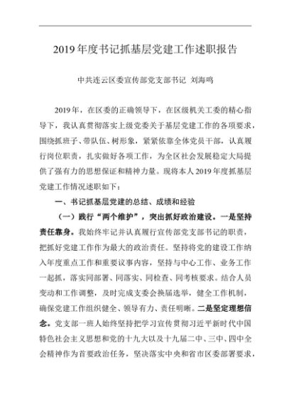 / 述职报告:2019年度书记抓基层党建工作述职报告(宣传部)