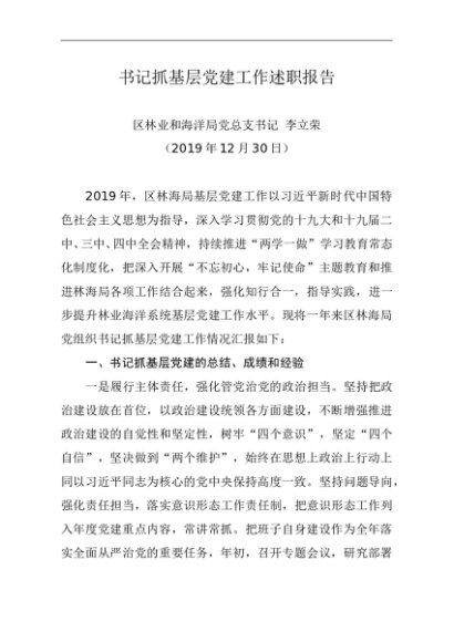 / 述职报告:2019年度书记抓基层党建工作述职报告(林海局)
