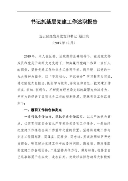 / 述职报告:2019年度书记抓基层党建工作述职报告(经发局)