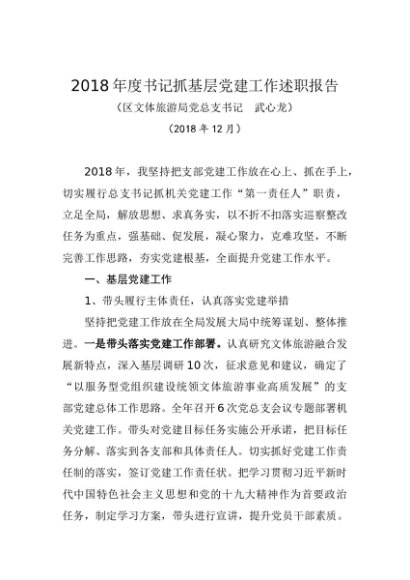 / 述职报告:2018年度书记抓基层党建工作述职报告(文体局)