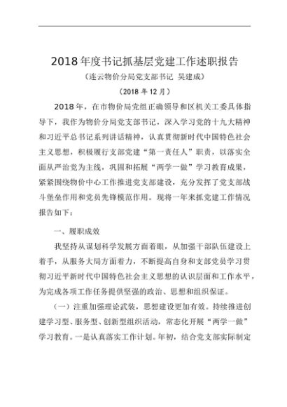 / 述职报告:2018年度书记抓基层党建工作述职报告(物价分局)