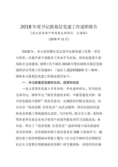 / 述职报告:2018年度书记抓基层党建工作述职报告(老干局)