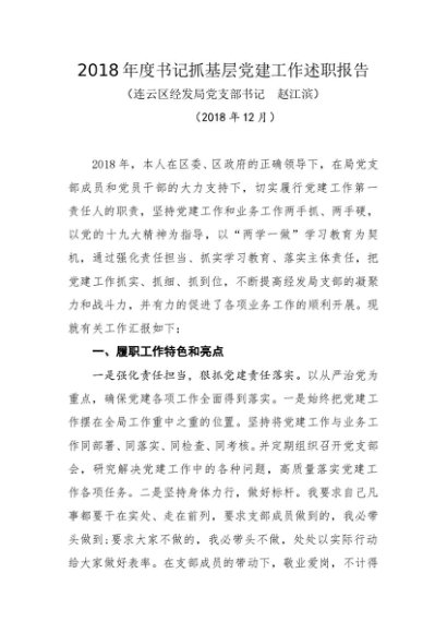 / 述职报告:2018年度书记抓基层党建工作述职报告(经发局)