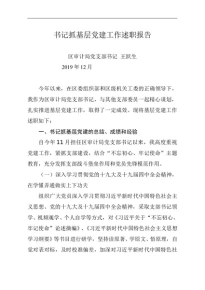/ 述职报告:2019年度书记抓基层党建工作述职报告(审计局)