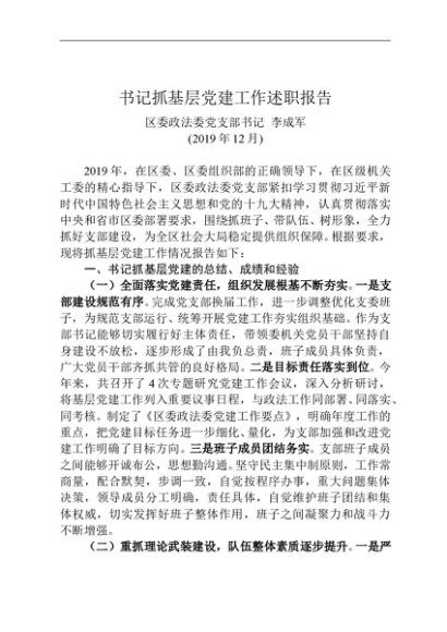 / 述职报告:2019年度书记抓基层党建工作述职报告(政法委)