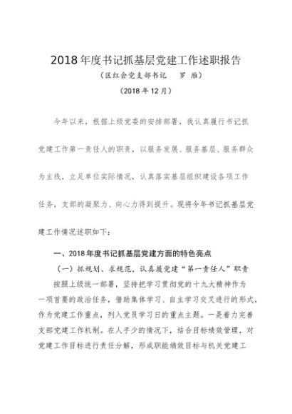 / 述职报告:2018年度书记抓基层党建工作述职报告(红十字会)
