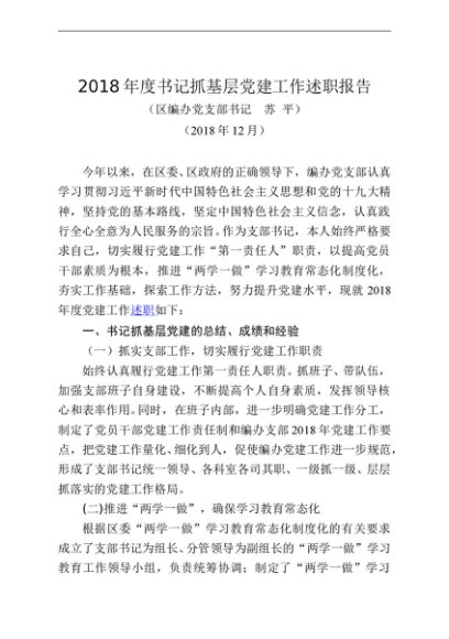 / 述职报告:2018年度书记抓基层党建工作述职报告(区编办)