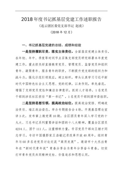 / 述职报告:2018年度书记抓基层党建工作述职报告(团区委)