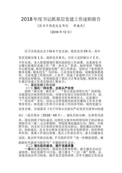 / 述职报告:2018年度书记抓基层党建工作述职报告(卫计局)