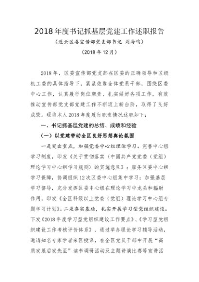 / 述职报告:2018年度书记抓基层党建工作述职报告(宣传部)