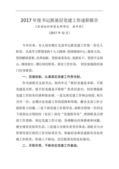 述职报告:2017年书记抓基层党建工作述职报告(组织部)