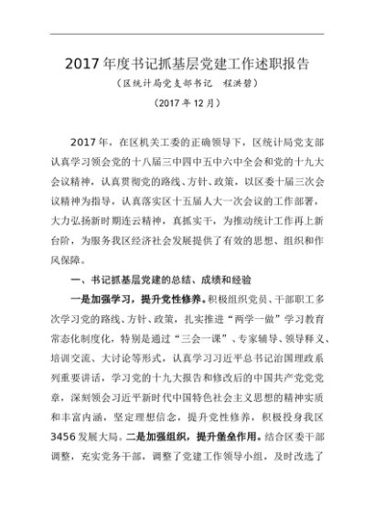 / 述职报告:2017年书记抓基层党建工作述职报告(统计局)