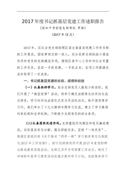 / 述职报告:2017年书记抓基层党建工作述职报告(红十字会)