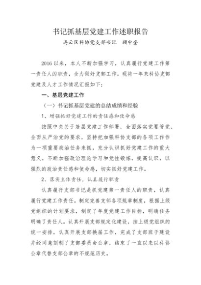 / 述职报告:2016年度书记抓基层党建工作述职报告(科协)