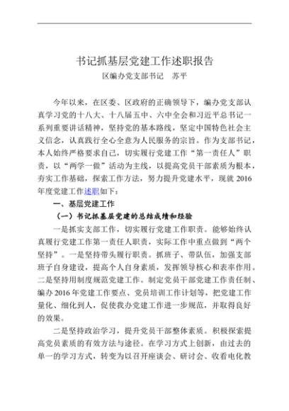 / 述职报告:2016年度书记抓基层党建工作述职报告(编办)