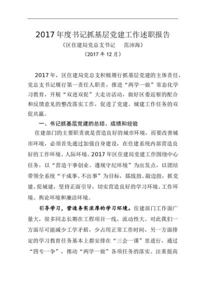 / 述职报告:2017年书记抓基层党建工作述职报告(住建局)