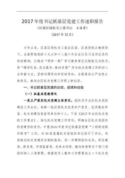 / 述职报告:2017年书记抓基层党建工作述职报告(机关工委)