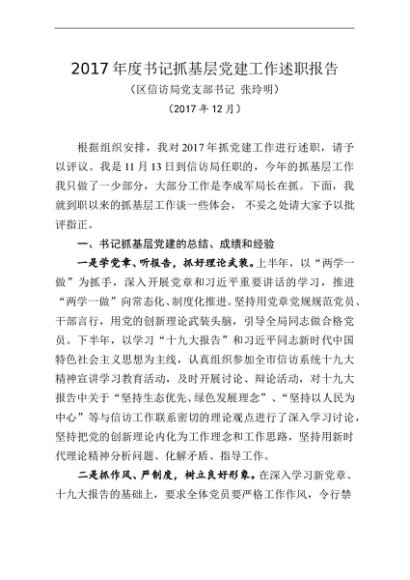 / 述职报告:2017年书记抓基层党建工作述职报告(信访局)