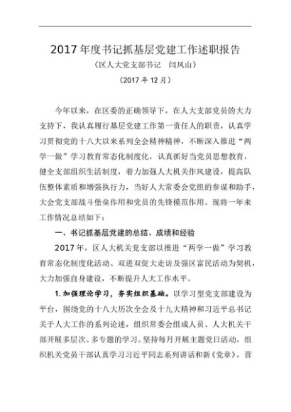 / 述职报告:2017年书记抓基层党建工作述职报告(人大办)