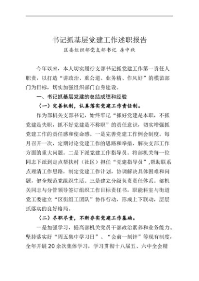 / 述职报告:2016年度书记抓基层党建工作述职报告(组织部)