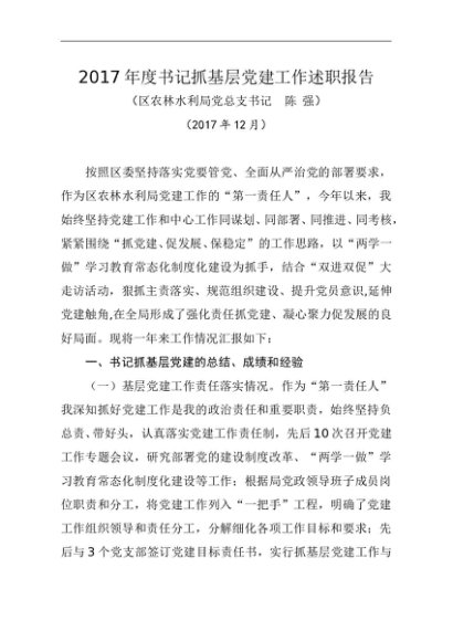 / 述职报告:2017年书记抓基层党建工作述职报告(农水局)