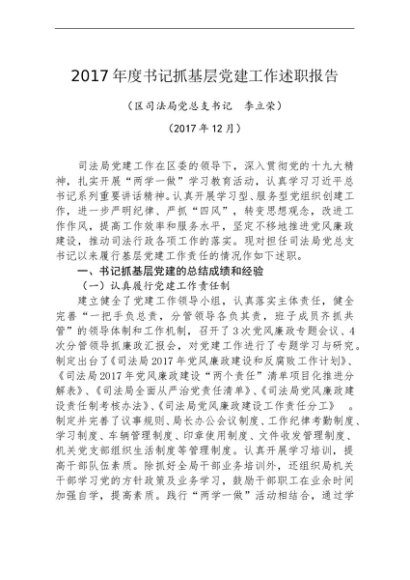 / 述职报告:2017年书记抓基层党建工作述职报告(司法局)