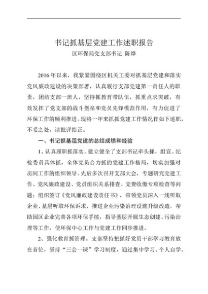 / 述职报告:2016年度书记抓基层党建工作述职报告(环保局)
