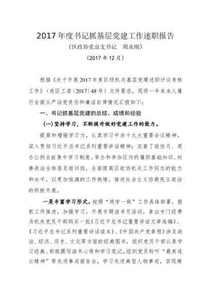 / 述职报告:2017年书记抓基层党建工作述职报告(政协办)