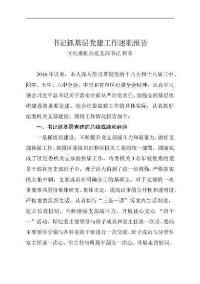 / 述职报告:2016年度书记抓基层党建工作述职报告(纪委)