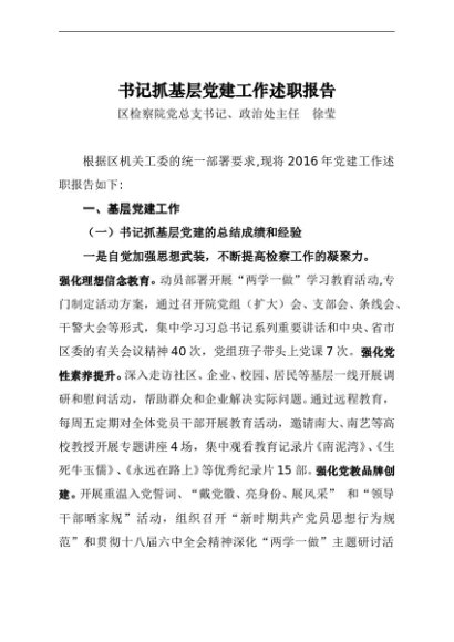 / 述职报告:2016年度书记抓基层党建工作述职报告(检察院)