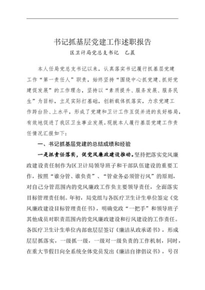/ 述职报告:2016年度书记抓基层党建工作述职报告(区卫计局)
