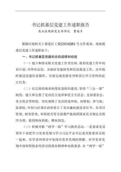/ 述职报告:2016年度书记抓基层党建工作述职报告(残联)