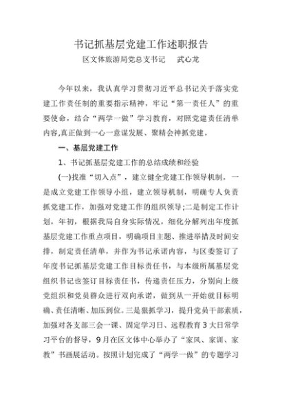 / 述职报告:2016年度书记抓基层党建工作述职报告(文体局)