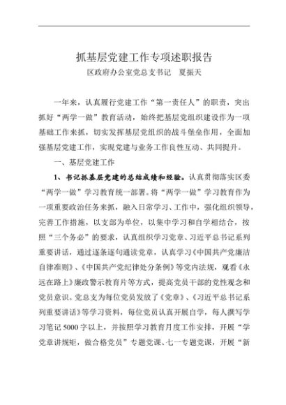 / 述职报告:2016年度书记抓基层党建工作述职报告(政府办)