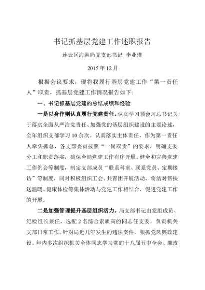 / 述职报告:2015年度书记抓基层党建工作述职报告(海渔局)
