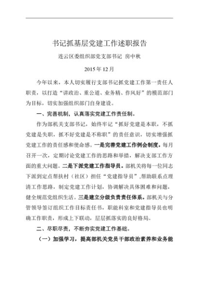 / 述职报告:2015年度书记抓基层党建工作述职报告(组织部)